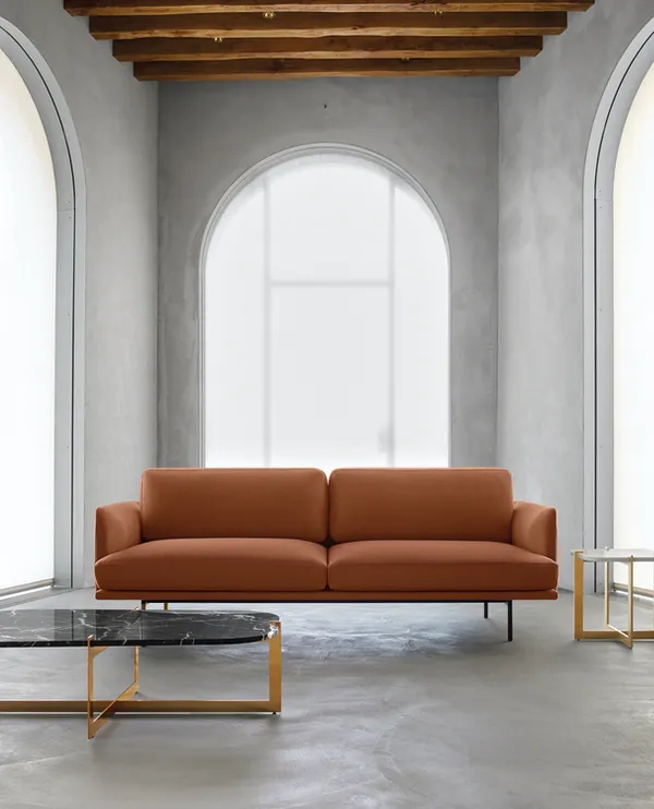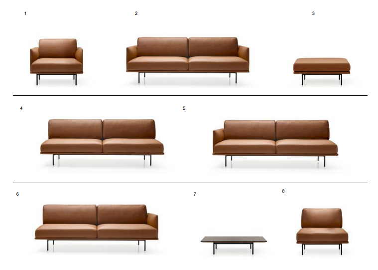 New York, collezione lounge dal design moderno ed essenziale disegnata per l’utilizzo domestico, residenziale, contract e office. Divano large, poltrona e tavolo con struttura smontabile in acciaio verniciato nero.