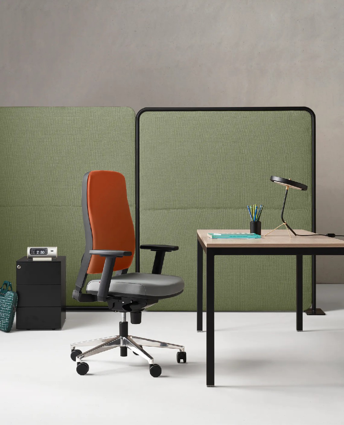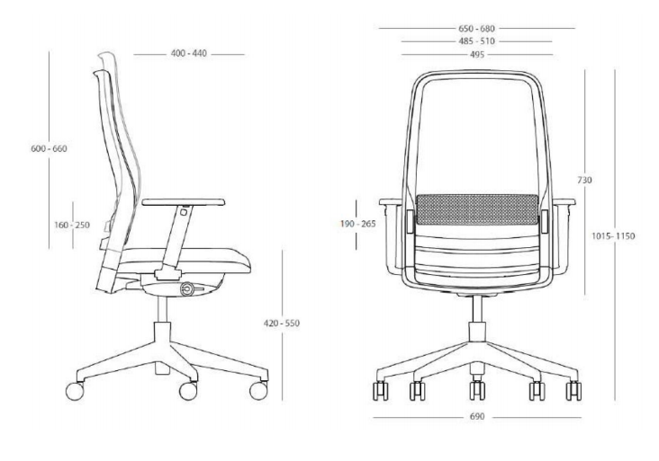 Poltrona operativa dalle dimensioni ampio e dalle forme semplici. Lo schienale rivestito è regolabile in altezza e dotato di supporto lombare per garantire il massimo del comfort.