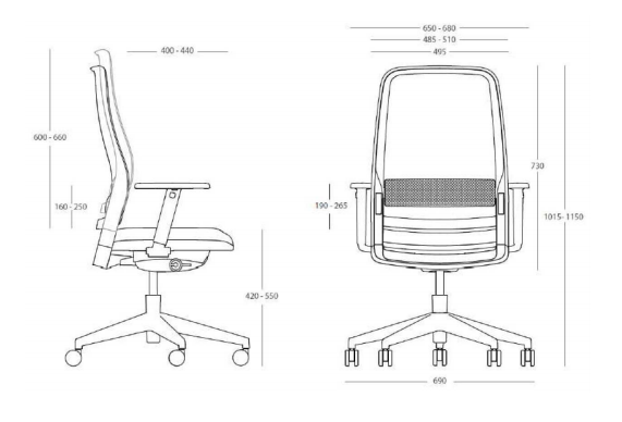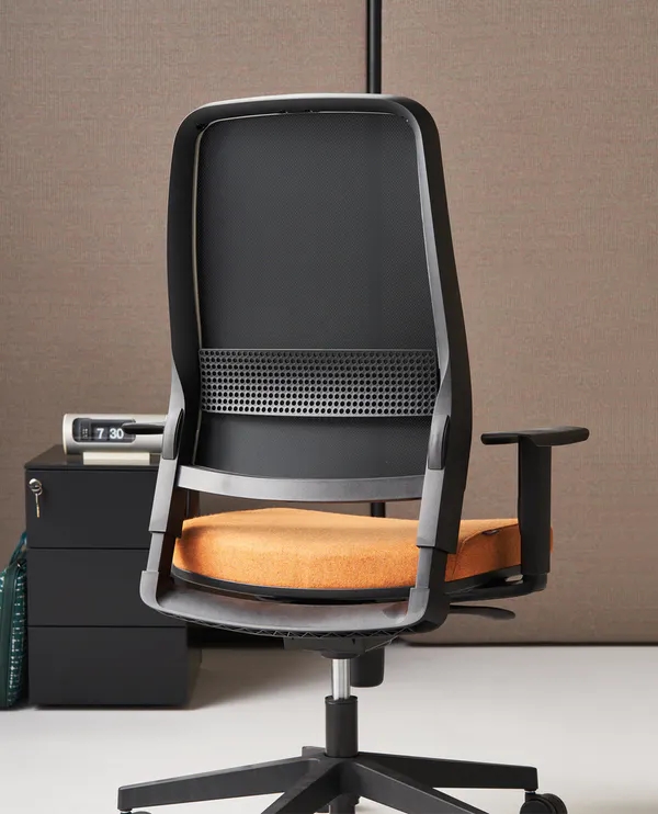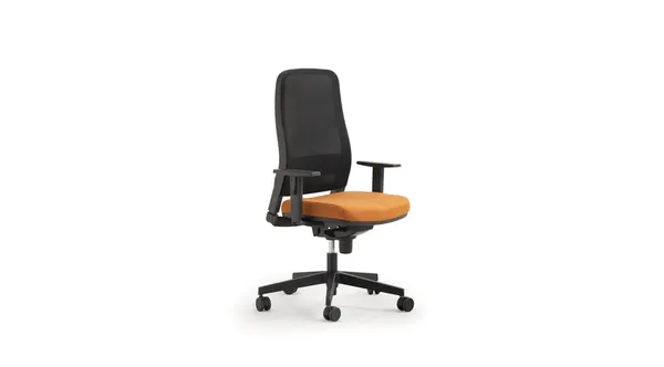 Poltrona operativa dalle dimensioni ampio e dalle forme semplici. Lo schienale in rete è regolabile in altezza e dotato di supporto lombare per garantire il massimo del comfort.