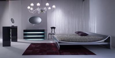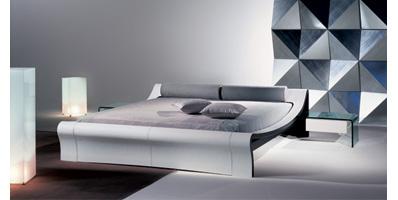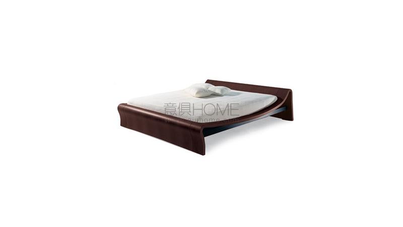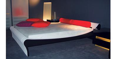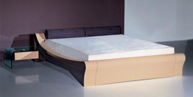 Bed in curved wood available in matt  lacquered finish or covered with leather.