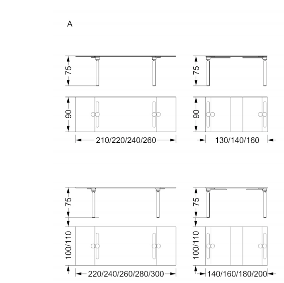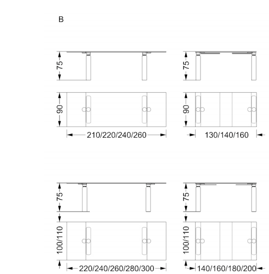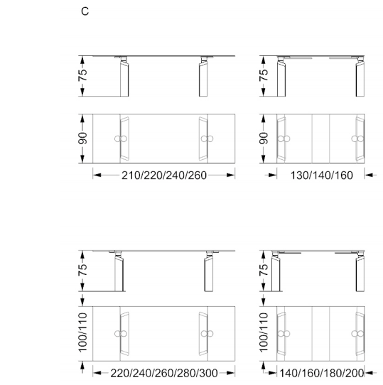xtension table. Tempered glass top and extensions 15 mm thick.