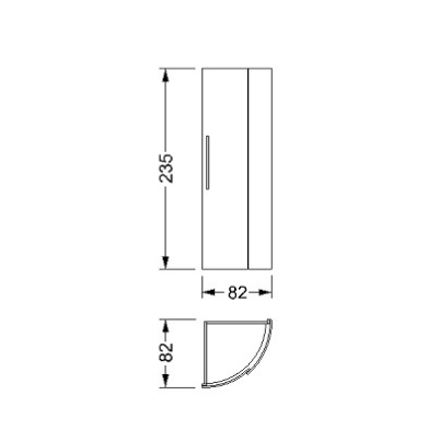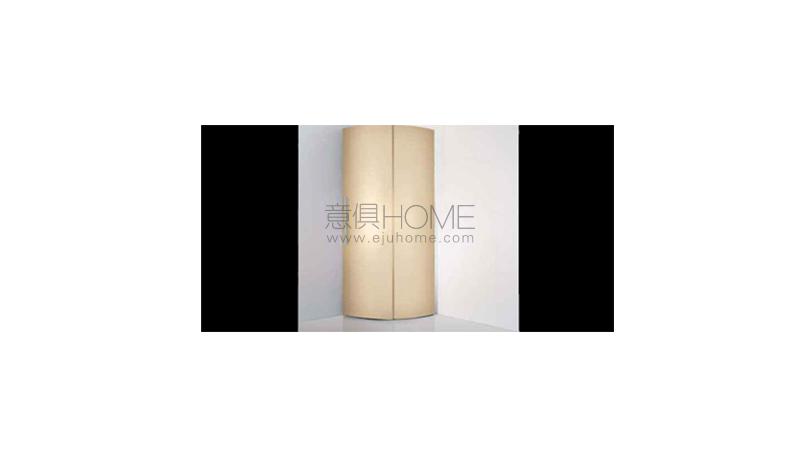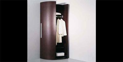 Corner wardrobe with sliding doors and white glass handle.Equipped with shelves and cloths-bar.Wood finish: matt or shiny lacquered.