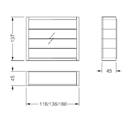 F - Element with transparent glass shelves, without back.