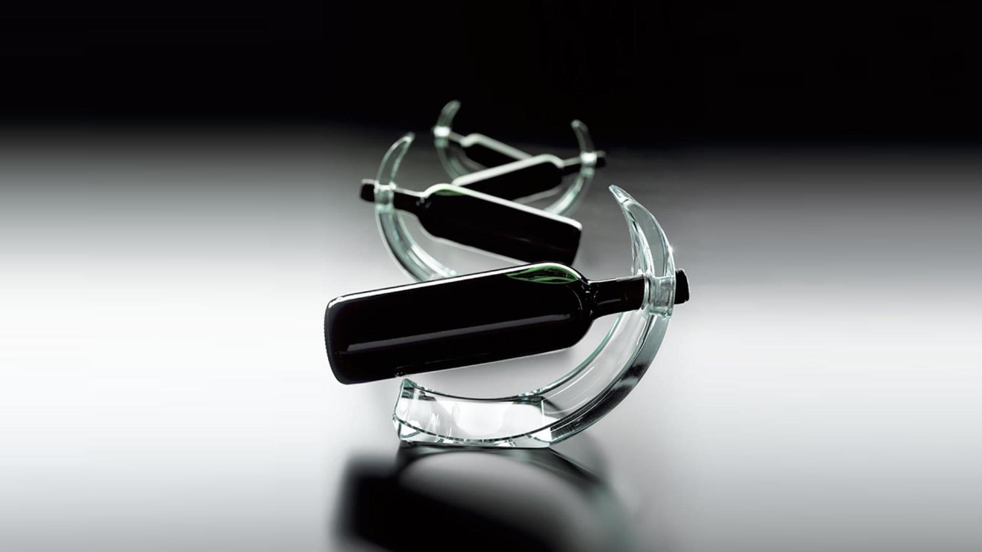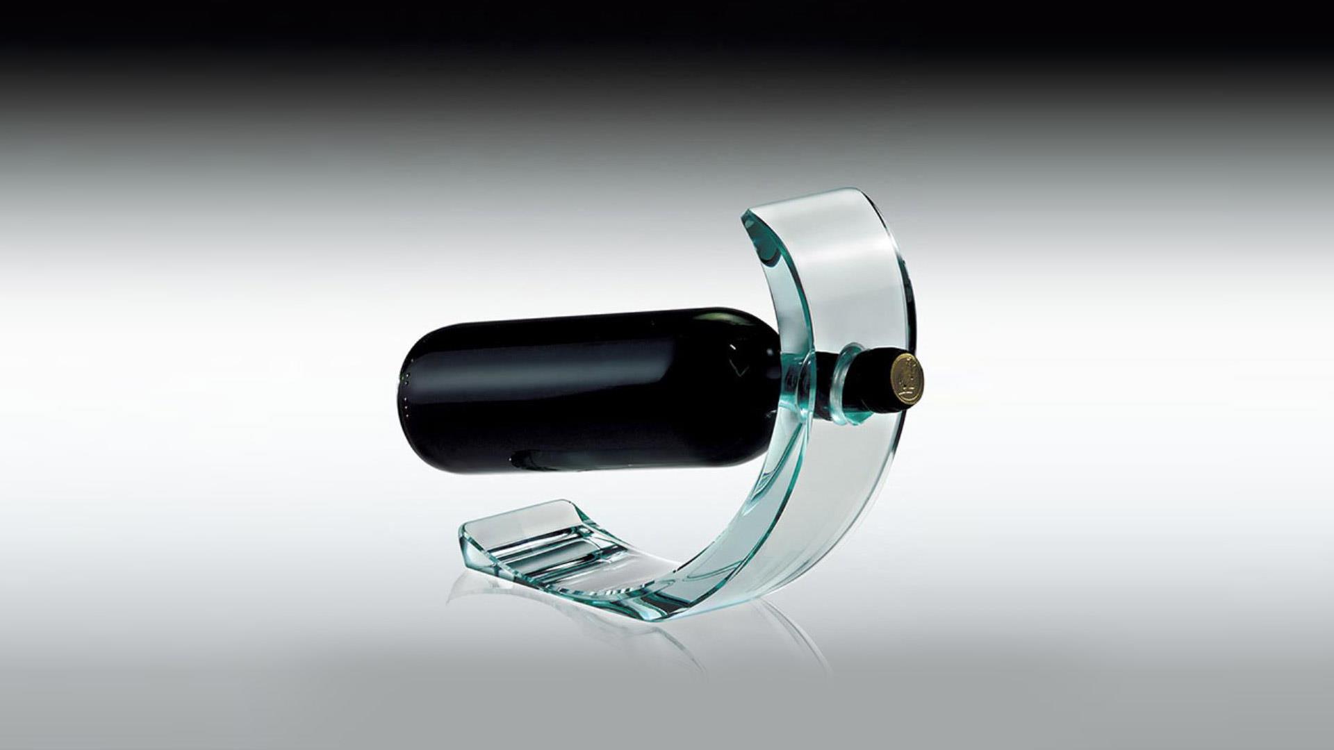 Bottle stand in curved extra-clear glass 19 mm thick;