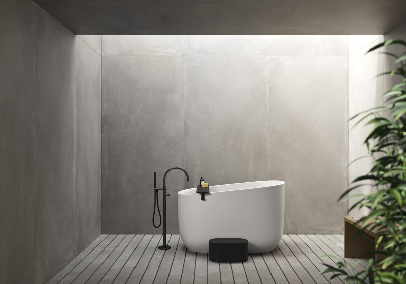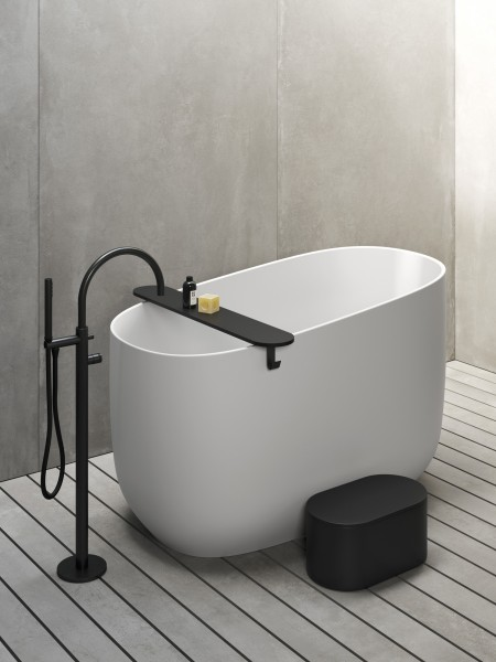 Una geometria nitida definisce la vasca Unico squadrata in Corian, disponibile in tutti i colori a listino. Può essere accessoriata con tutti i sistemi benessere.
