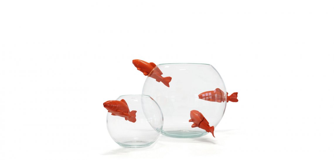 La collezione di vasi No Limit ci immerge, con i suoi pesci di porcellana, in un universo giapponese immaginato da Vanessa Mitrani.
