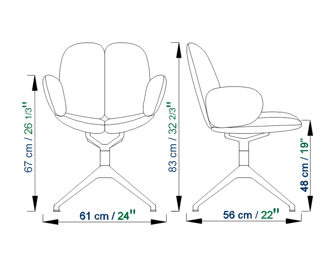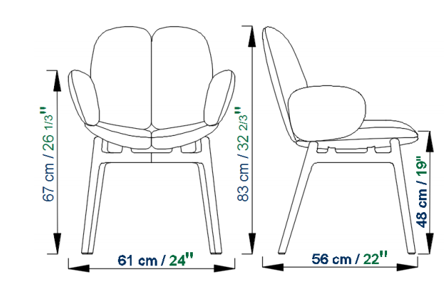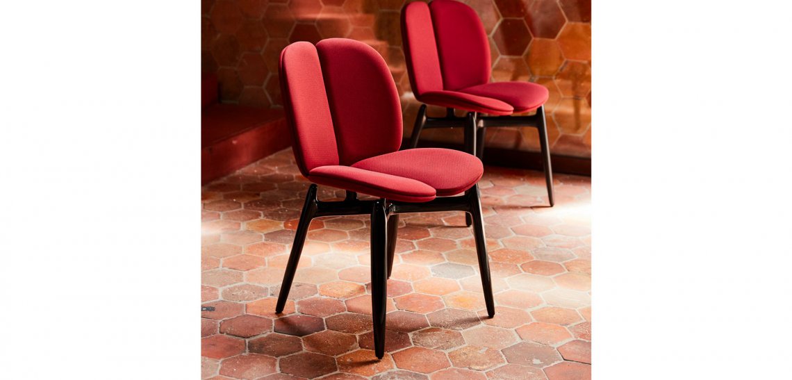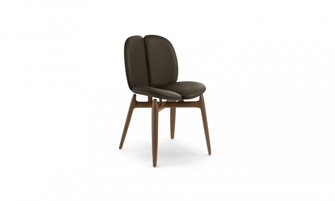 Per quanto riguarda le sedie, stessa idea: seduta, schienale e braccioli sembrano usciti da una divisione cellulare, come in un corpo in crescita. E in questa logica, la seduta è sospesa sopra la base affusolata con richiami scandinavi.