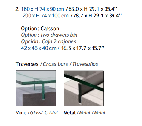 Creata nel 2005 da Lionel Morgaine, la collezione Ténéré è caratterizzata dalla sintonia tra forza (le sue gambe robuste) e leggerezza (il piano in vetro con effetto sospeso grazie a 4 traverse). Si è cercato di esplorare diversi materiali, da semplici impiallacciature in rovere o noce massicci, passando dagli effetti materici come il cemento
