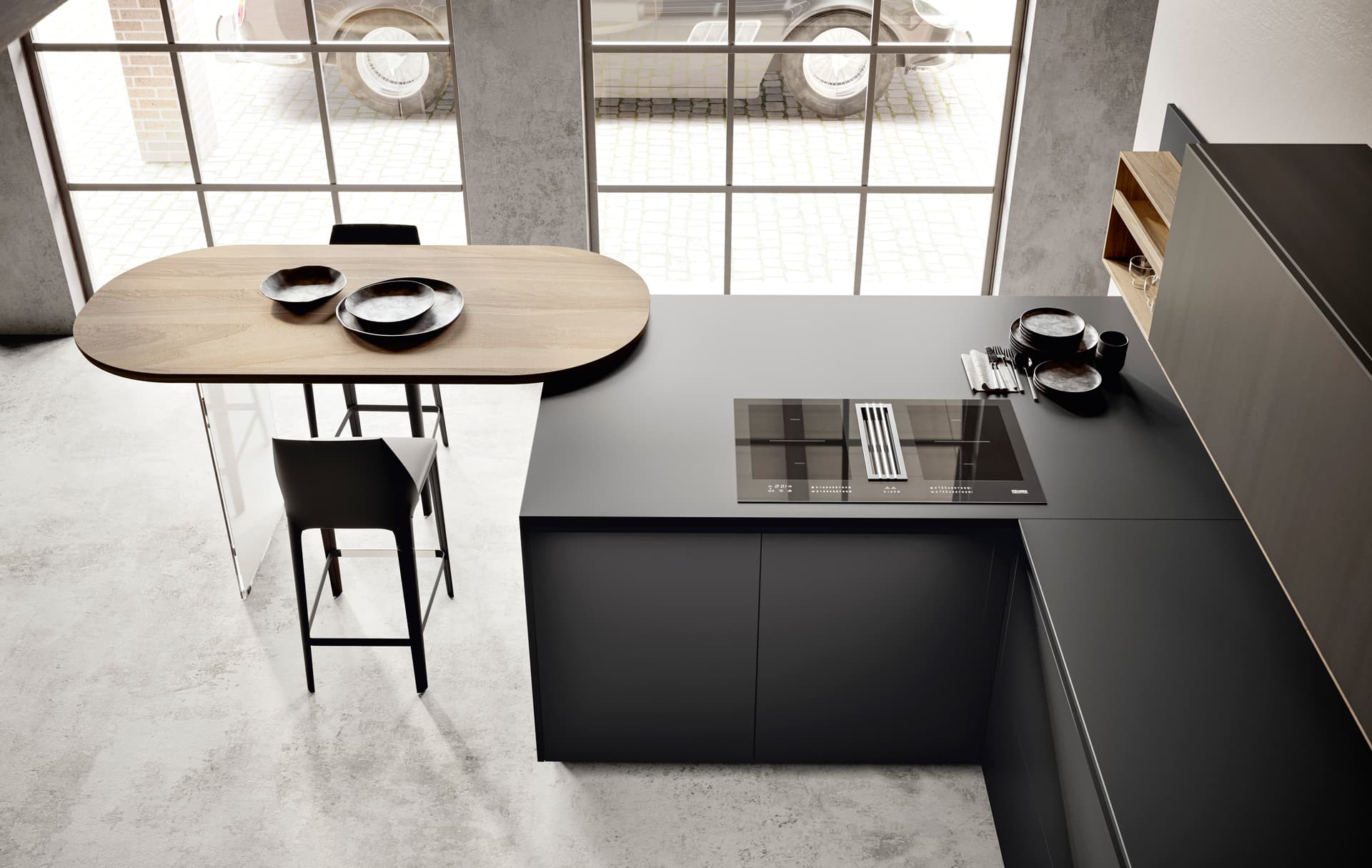 Massimo Castagna ripensa ed evolve la tipologia base della cucina contemporanea realizzando un progetto originale e innovativo che va oltre il concetto della cucina caratterizzata dall’anta: basi con volumetria a zoccolo basso a grande capienza e una vasta quantità di componenti speciali che, come oggetti, sono aggregabili alla composizione delle basi, proponendo nuovi significati e funzionalità, oltre che un alto grado di personalizzazione. Un progetto dinamico, costantemente in progress che evolve e si arricchisce man mano di nuovi elementi, valori, materie e significati.