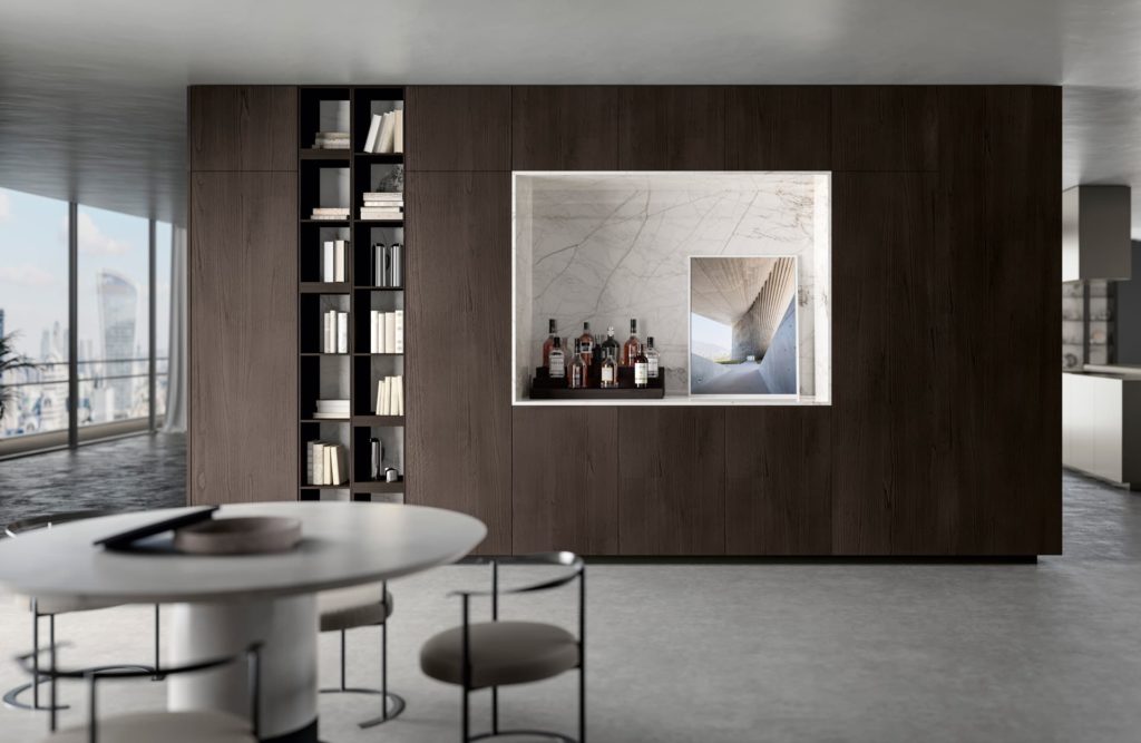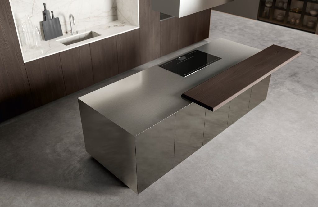 ripensa ed evolve la tipologia base della cucina contemporanea realizzando un progetto originale e innovativo e una vasta gamma di componenti speciali aggregabili, proponendo nuovi significati e funzionalità, oltre che un alto grado di personalizzazione. Un progetto dinamico che evolve e si arricchisce di nuovi elementi, valori, materie e significati.