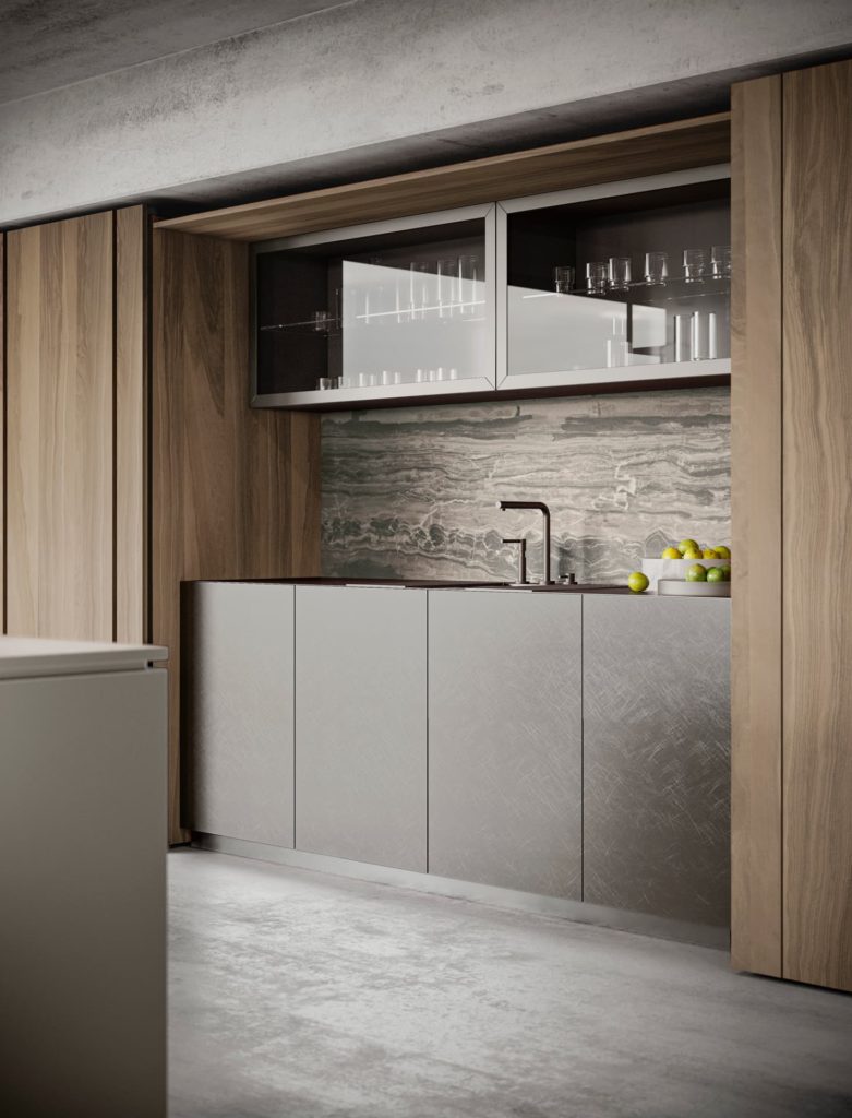 Massimo Castagna ripensa ed evolve la tipologia base della cucina contemporanea realizzando un progetto originale e innovativo e una vasta gamma di componenti speciali aggregabili, proponendo nuovi significati e funzionalità, oltre che un alto grado di personalizzazione. Un progetto dinamico che evolve e si arricchisce di nuovi elementi, valori, materie e significati.