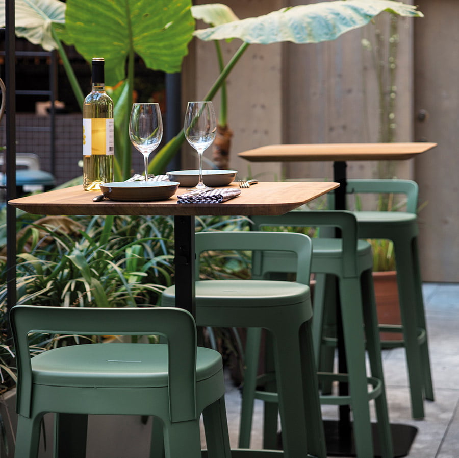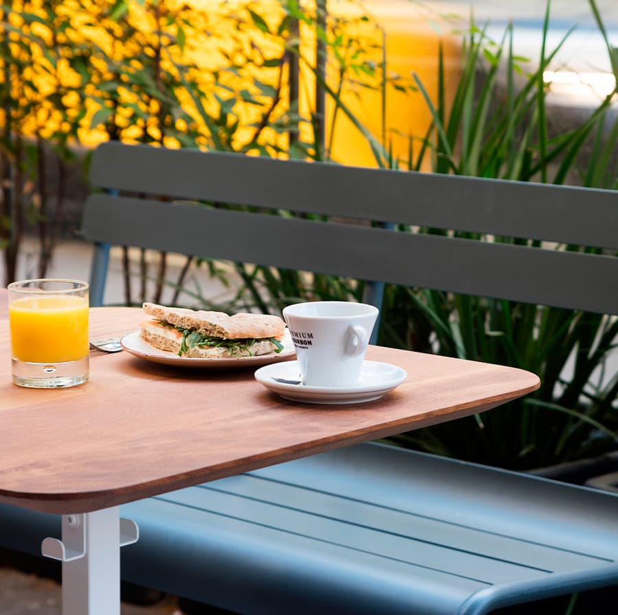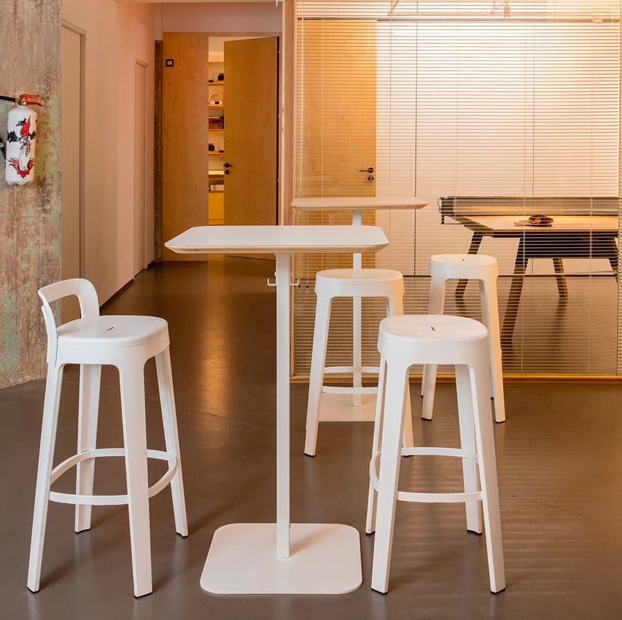 Versatility in functionality: a standard office table, a conference table, a hot desk, a dining table at home, in a bar or in a restaurant.