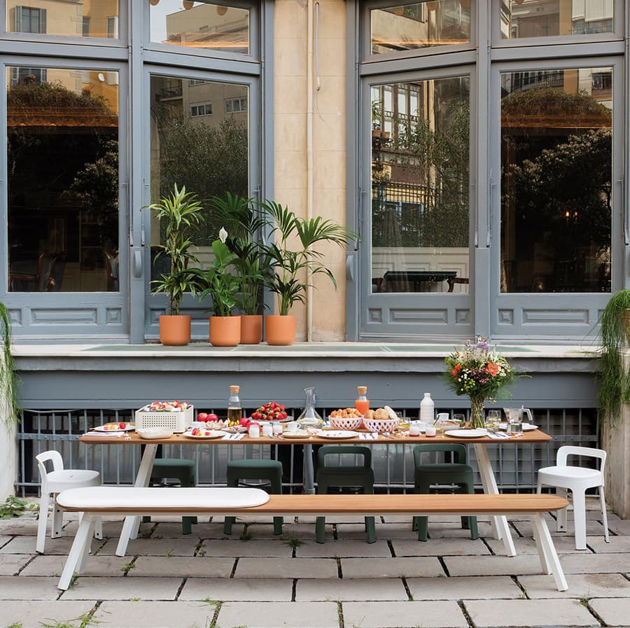 It can be in your home, as a dining room table, a garden table or even a home desk. Or at the office, fostering mobility, a healthy work environment and interaction between colleagues.