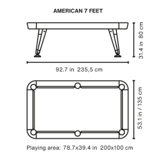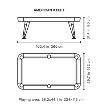 The Diagonal pool table comes in two sizes, 8 ft American and 7 ft American, in order to meet different space requirements.