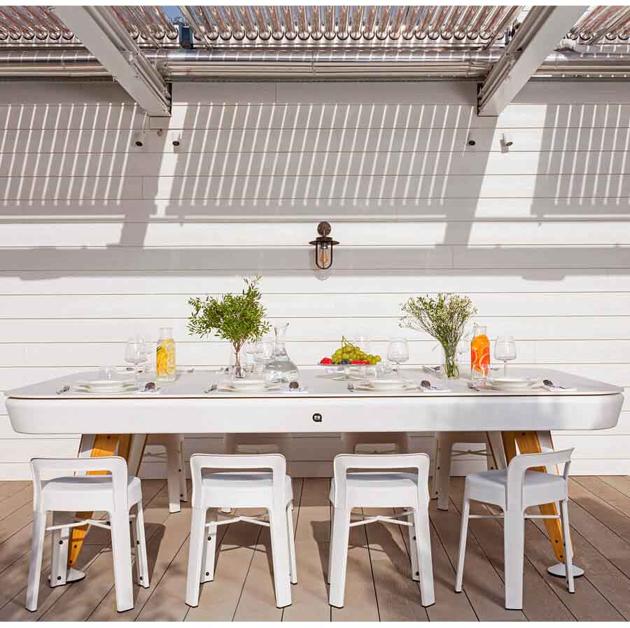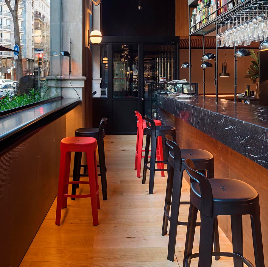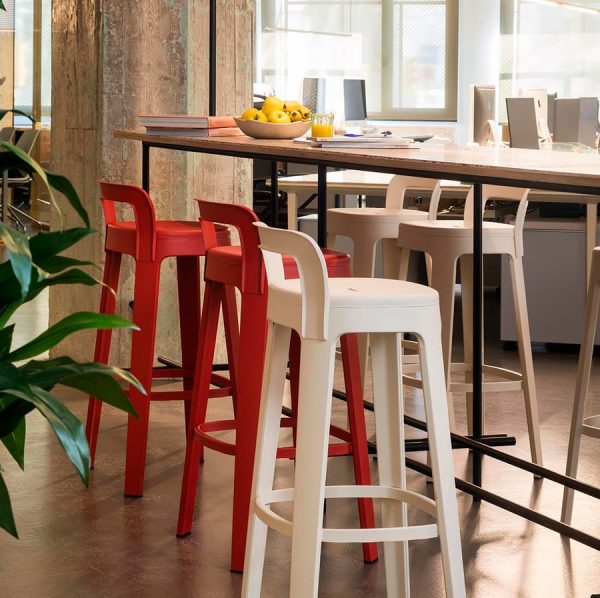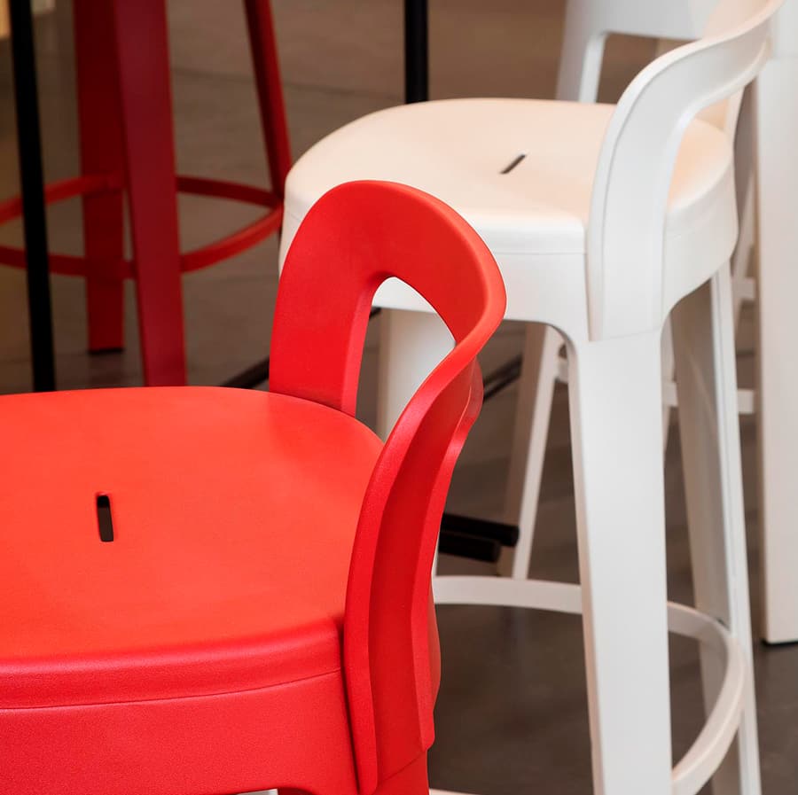 It comes into its own and reveals all its charms: its clean design, with sleek, elegant lines; its comfortable, generously sized ergonomic seat; its range of eye-catching and easy-to-match colours; its different heights to suit all sorts of tables and bars.