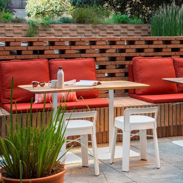 That’s when it shows its versatility, functionality and toughness. Ombra is designed and manufactured for intense use both indoors and outdoors. Ready to withstand lots of sit-downs and plenty of movement. Ready to go outside when the sun shines. Ready to go back in, if you’re surprised by a sudden chill or downpour. But also ready to wait for you outside in the rain, thanks to its weatherproof cataphoretic treated steel structure.