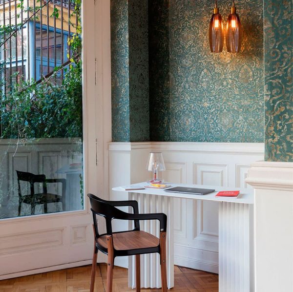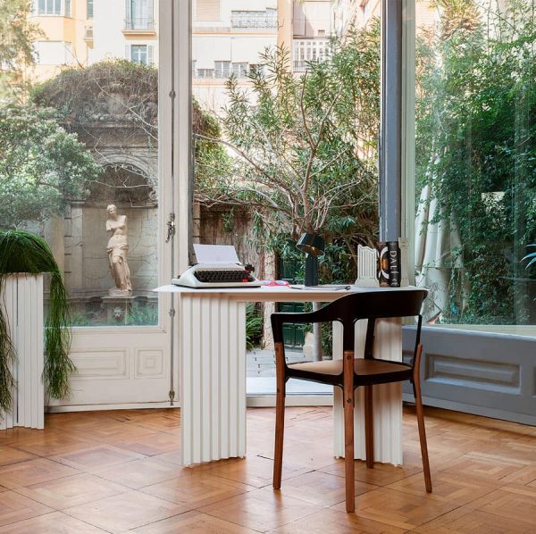 The Plec desk fits stylishly into any setting and space, whether as a home desk at home, as a console table in the hotel room or in your garden surrounded by plants and flowers. Because the Plec table is also suitable for outdoor use thanks to the cataphoretic coating process applied to the steel.