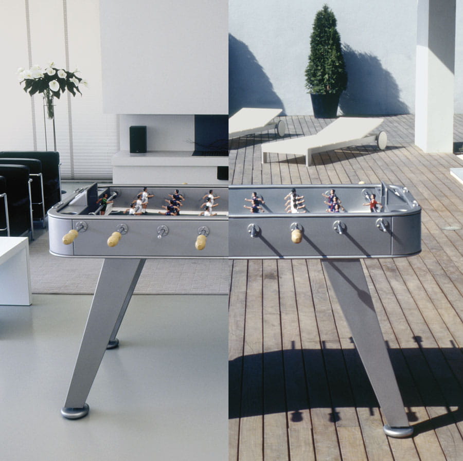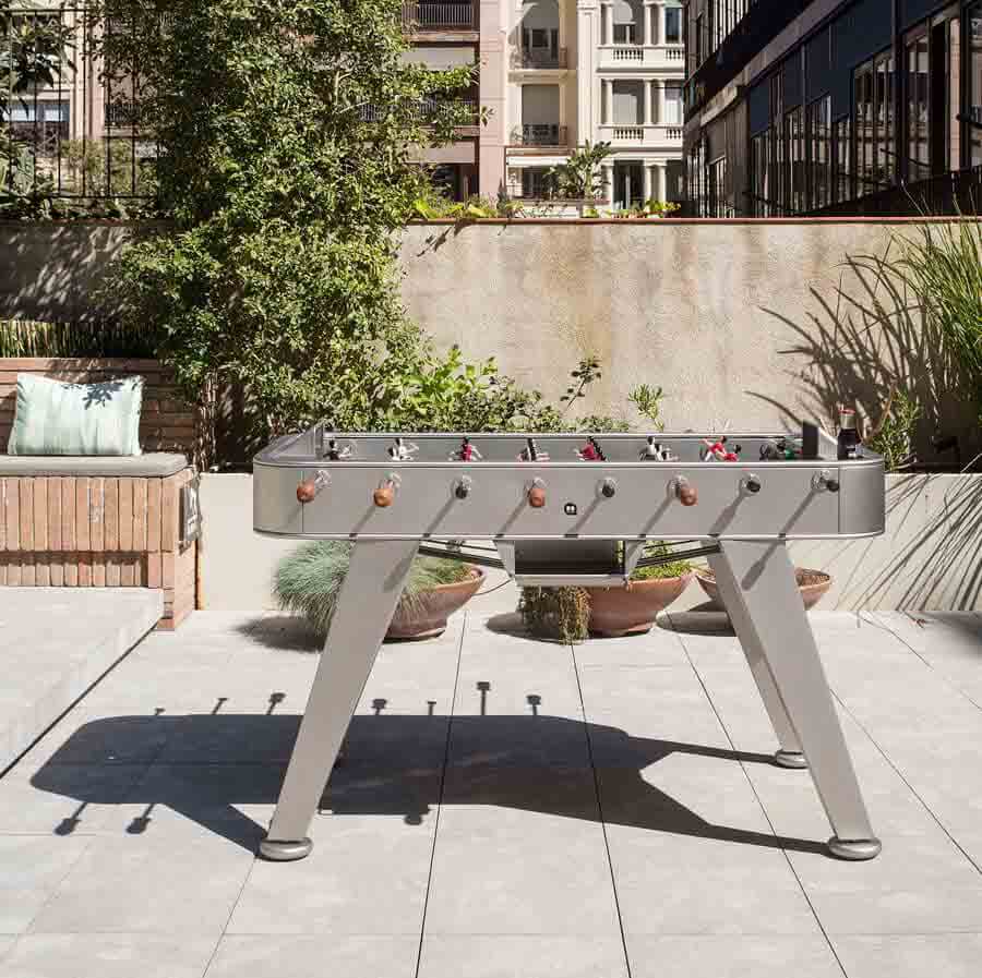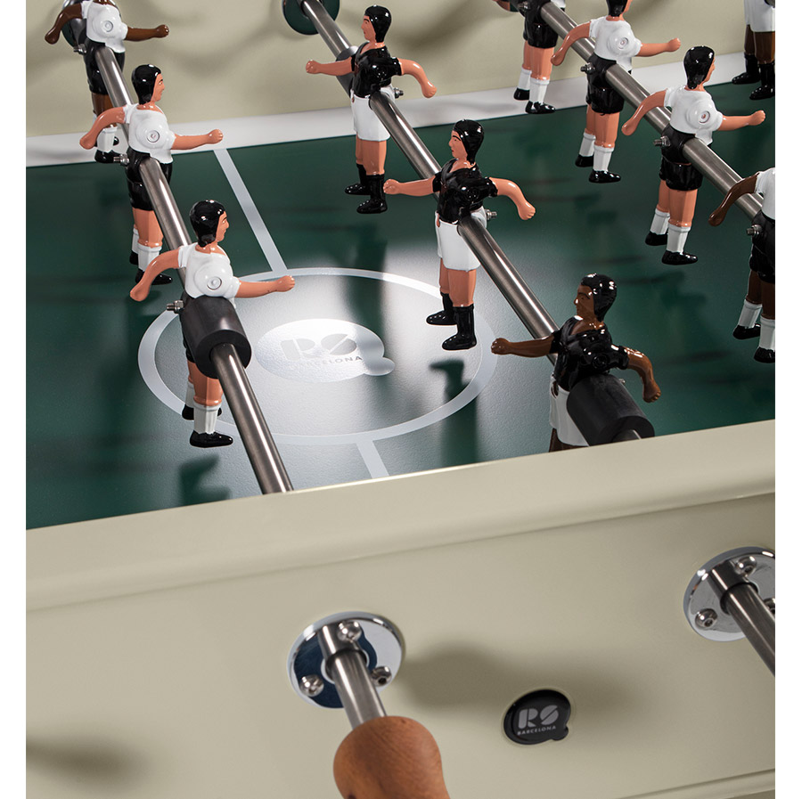This is a football table that stands out from the crowd thanks to its industrial design, sleek lines and elegant colours, not to mention its details, such as its glass-holders for all four players and its rubber-base levellers.