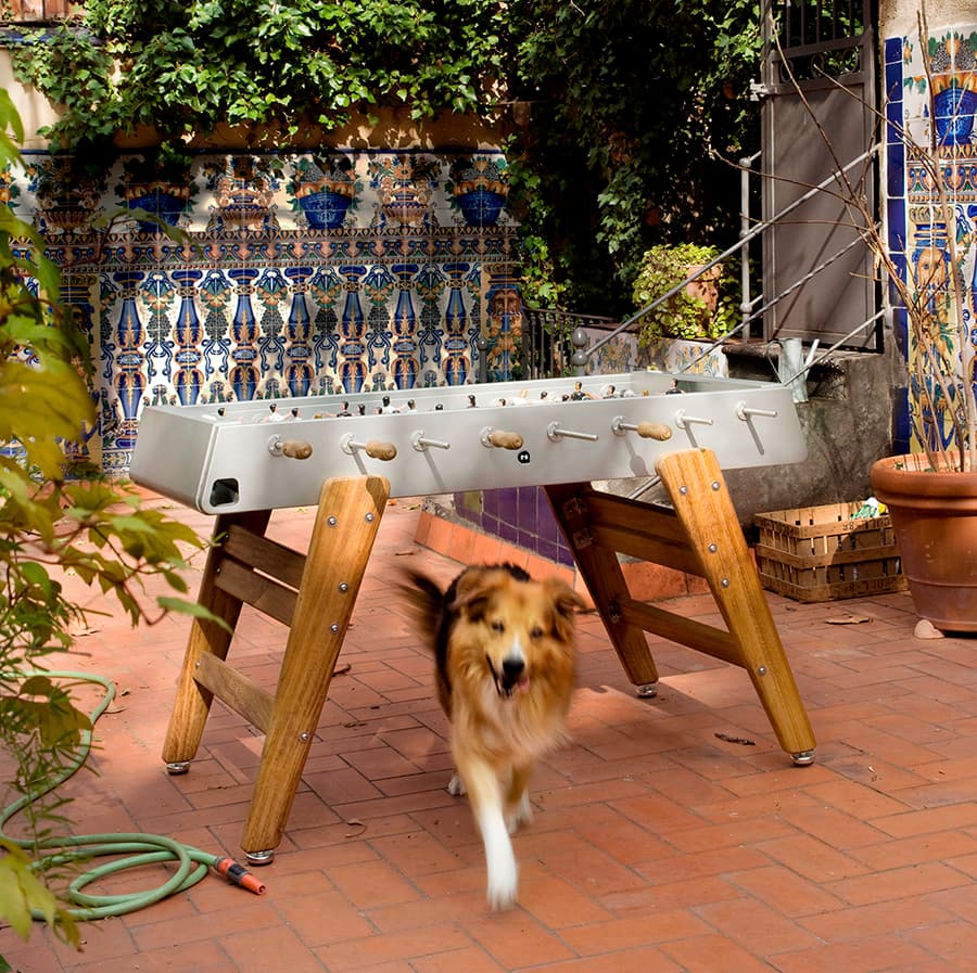 RS3 Wood is designed for outdoor living. It has the same structure as the RS3 but is fitted with wooden legs, which give the design added warmth and a more contemporary look. The essence of the game remains intact, because playability, toughness, durability and design form the perfect combination in all our football tables, so you can enjoy the game without having to compromise on design. This table will be with you for as many different lives as you wish to live.