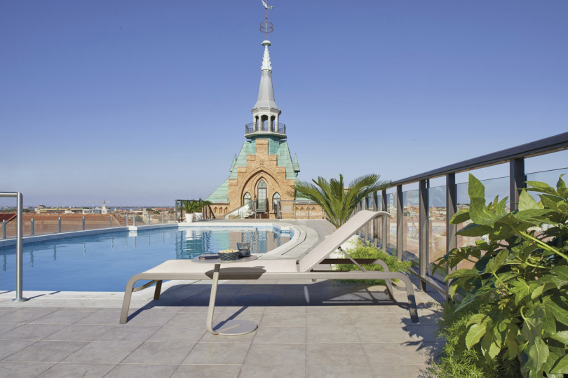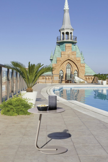 Pouf in alluminio verniciato a polveri, intrecciato con Round Searope. Pratico e dal gusto finemente classico, perfetto per accompagnare la poltrona coordinata. Adatto per interno e per esterno, sia in contesti residenziali che contract.