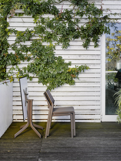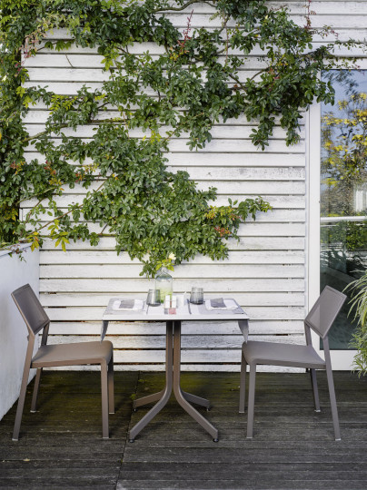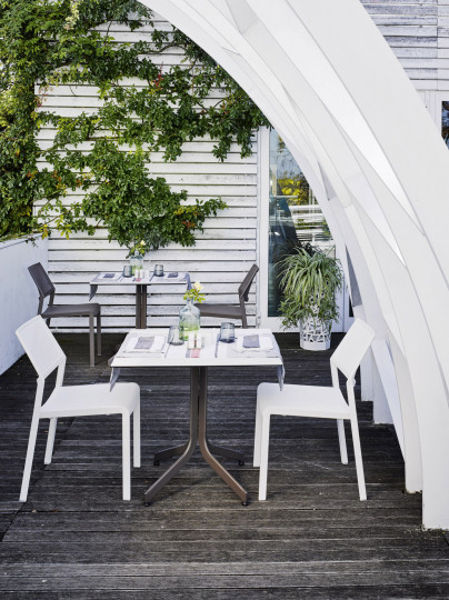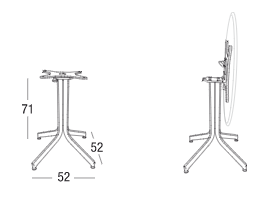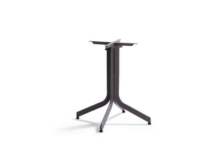 Base tavolo con colonna e crociera sotto-piano in alluminio. Verniciatura a polveri (RAL 9006). La colonna poggia su una base tonda, ideale per l’arredamento esterno di bar e ristoranti sia in situazioni contract che residenziali.
