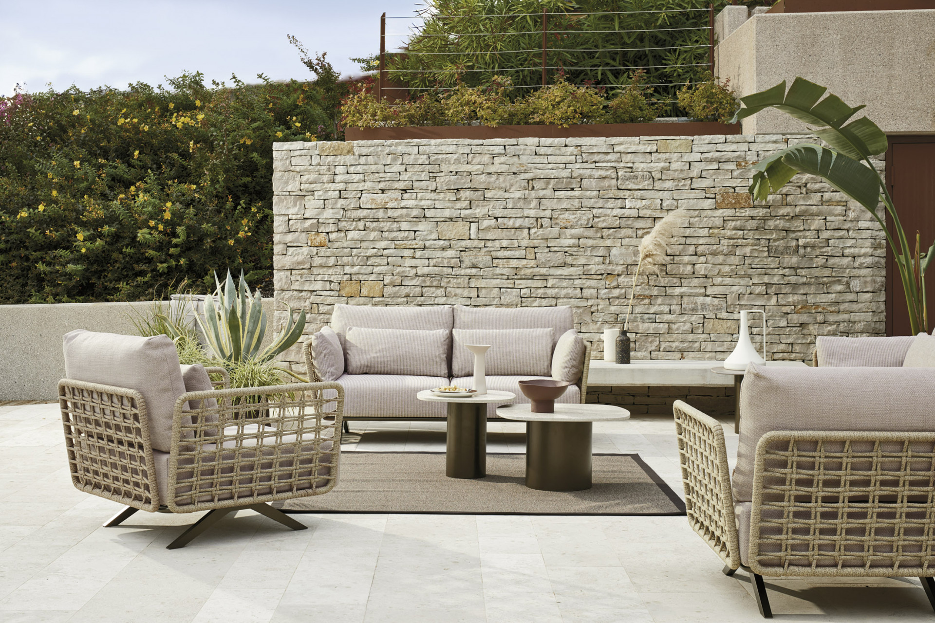 Schienale in acciaio inox Aisi 304 verniciato a polveri, intrecciato in Oval Trendyrope. Elemento componibile della linea Armàn, il cui intreccio in corda conferisce un tocco di artigianale raffinatezza ai divani, alle poltrone, alle chaise longue e daybed che compongono la collezione. Un dettaglio che costituisce non solo un elemento visivamente affascinante, ma offre anche un comfort ergonomico e un sostegno accogliente.