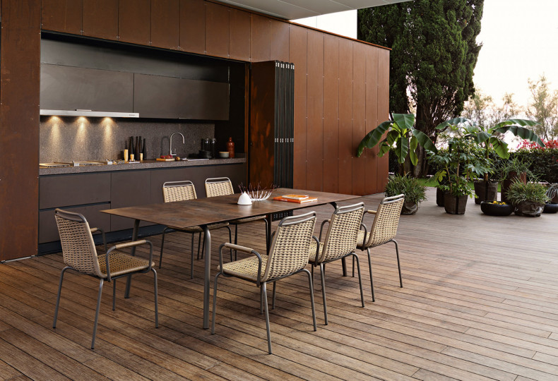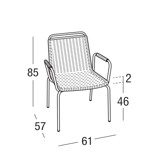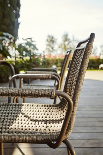 Sedia con braccioli in alluminio verniciato a polveri, intrecciata con Nautic Rope. Linee semplici ed essenziali che ricordano la tradizione. La ricchezza dell’intreccio si contrappone alla naturalezza della forma creando un connubio perfetto che rendono questa sedia ideale per qualsiasi arredamento: esterno ed interno, residenziale e contract. I braccioli in alluminio e nautic rope danno quel tocco in più a questa sedia già di per sé esclusiva.