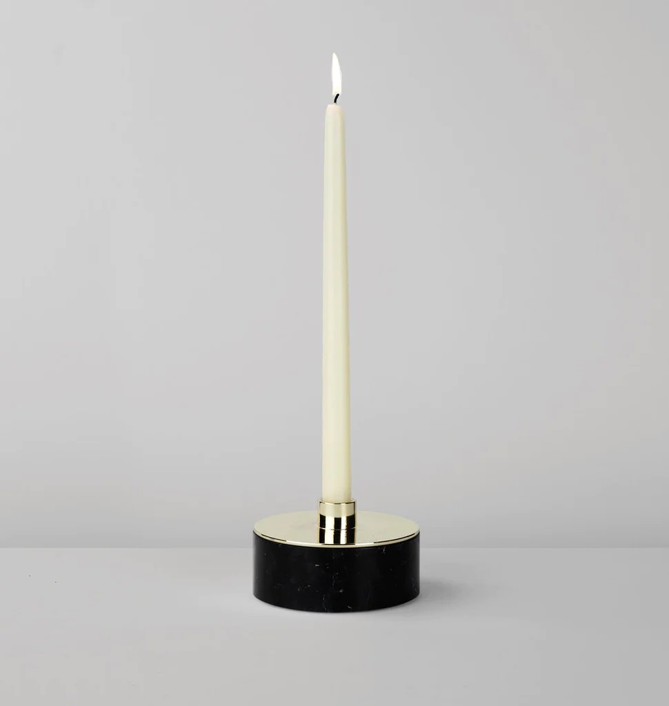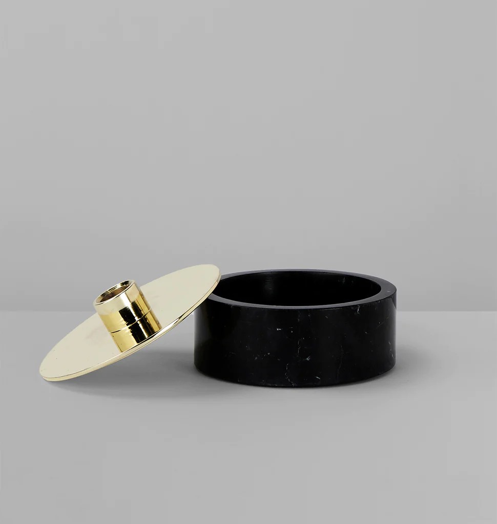 With its removable brass top and hollow stone base, Cache holds more than a candle. Inspired by the need to contain a growing collection of new and vintage matchbooks, and playing on the French word for "hiding," this modern reliquary is perfect for stashing small keepsakes and private mementos.