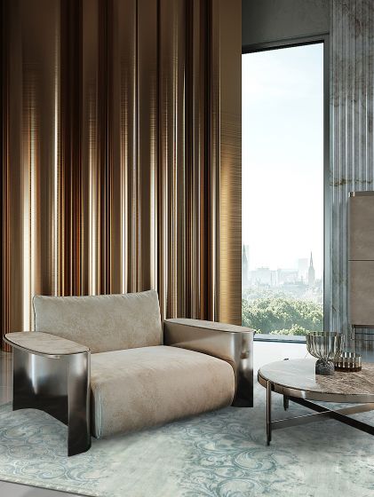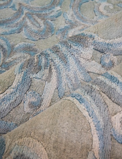 The ELIE SAAB Maison Rug Collection presents Gabrielle Faded created in collaboration with Sahrai – the ultimate destination shop for rugs. Romantic decorations in pastel tones, emphasise classic lines in a contemporary vision. Created from the finest natural silk, this rug features an allover brocade pattern in a soft blue colour. The silk relief accentuates the design together with preserving the soft texture extremely pleasant to the touch. The faded patches throughout give the washed away aspect. This design comes in handknotted finish in: