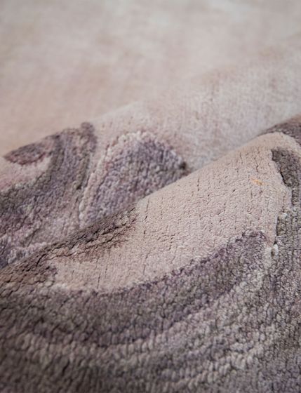 This design features a brocade pattern border interrupted by plain weave giving it a faded-away effect. The lilac colour combined with the sheen and softness of the silk texture gives this rug a particular subtleness. It comes in handknotted finish in:Silk and Silk Relief
