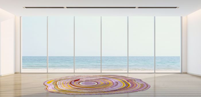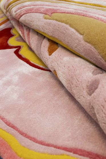 Agata Coyamito is one of the exclusive limited edition bespoke designer rugs part of Sahrai's Artists Selection designed in collaboration with David Elia and inspired by the mythical Brazilian Agate stone known for its uniqueness - no two Agate stones are the same. This design features spirals of vivid colours stemming from an epi-center with pink as the dominating colour and covering the entire surface of the rug.