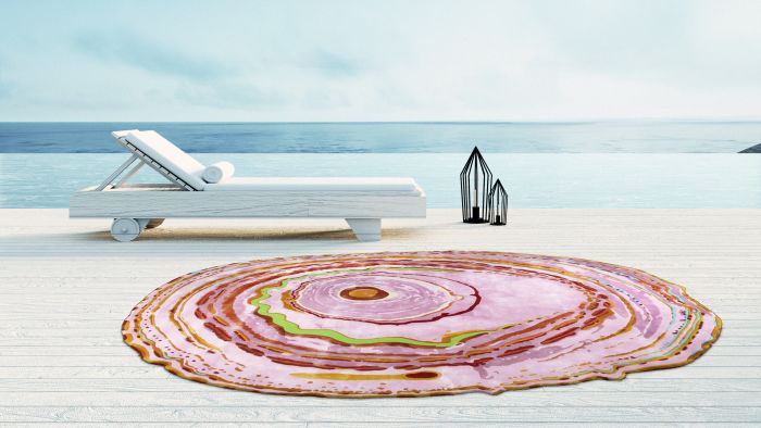 Agata Pink Moss is one of the exclusive limited edition unique rugs part of Sahrai's Artists Selection designed in collaboration with David Elia and inspired by the mythical Brazilian Agate stone known for its uniqueness - no two Agate stones are the same. This design features spirals stemming from an epi-center with candy pink being the dominant colour and complemented with matching shades.