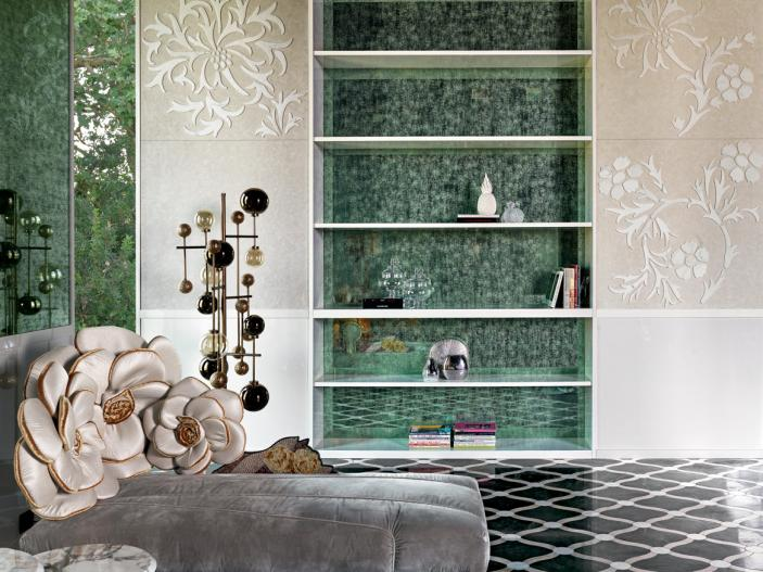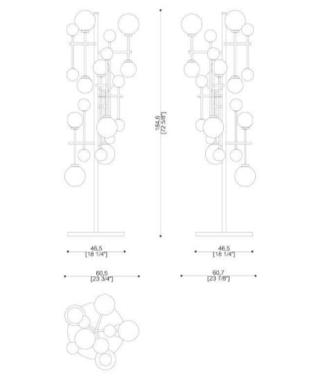 Glass spheres of various colours, finely worked, shape the light through transparency.