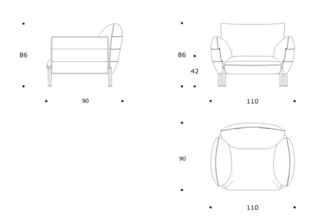 Dimensioni: larghezza 110 cm, altezza 86 cm, profondità 100 cm