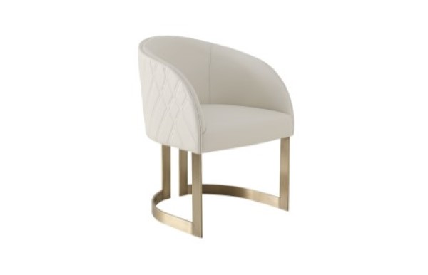 Sedia imbottita fissa, gambe acciaio brunito spazzolato.