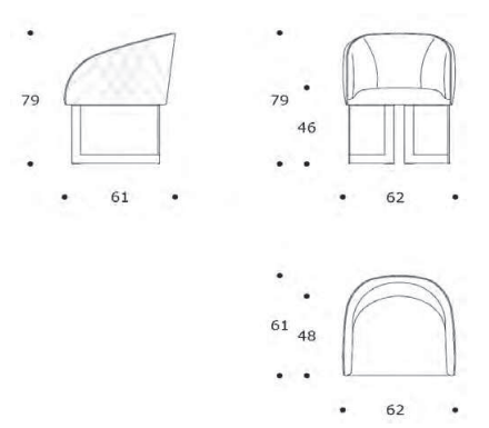 Dimensioni: larghezza 62 cm, altezza 79 cm, profondità 61 cm.
