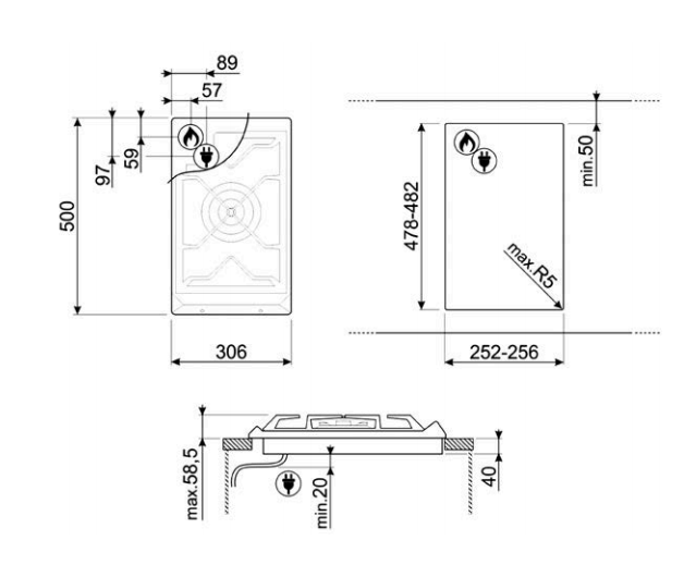 Classic/ 經(jīng)典系列,30cm 多米諾嵌入式燃氣灶,不銹鋼面板,銅爐頭