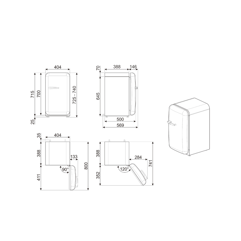 50 年代復(fù)古系列,單門冰箱,A+++ 級(jí)能效,右手開門