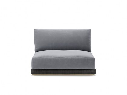 DIVANO/POUFF IN VELLUTO CON PANNELLI IN PELLEINTRECCIATA.