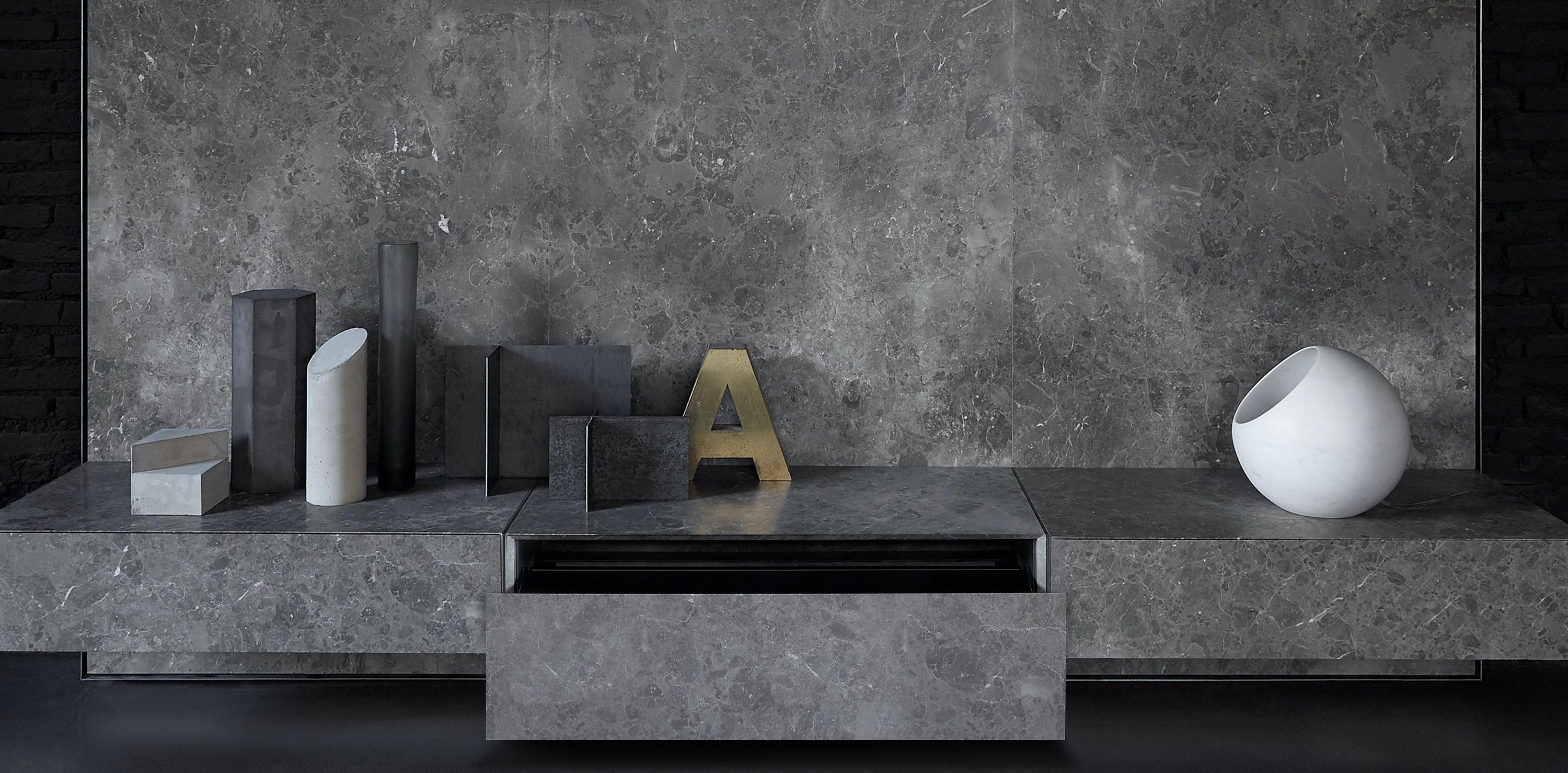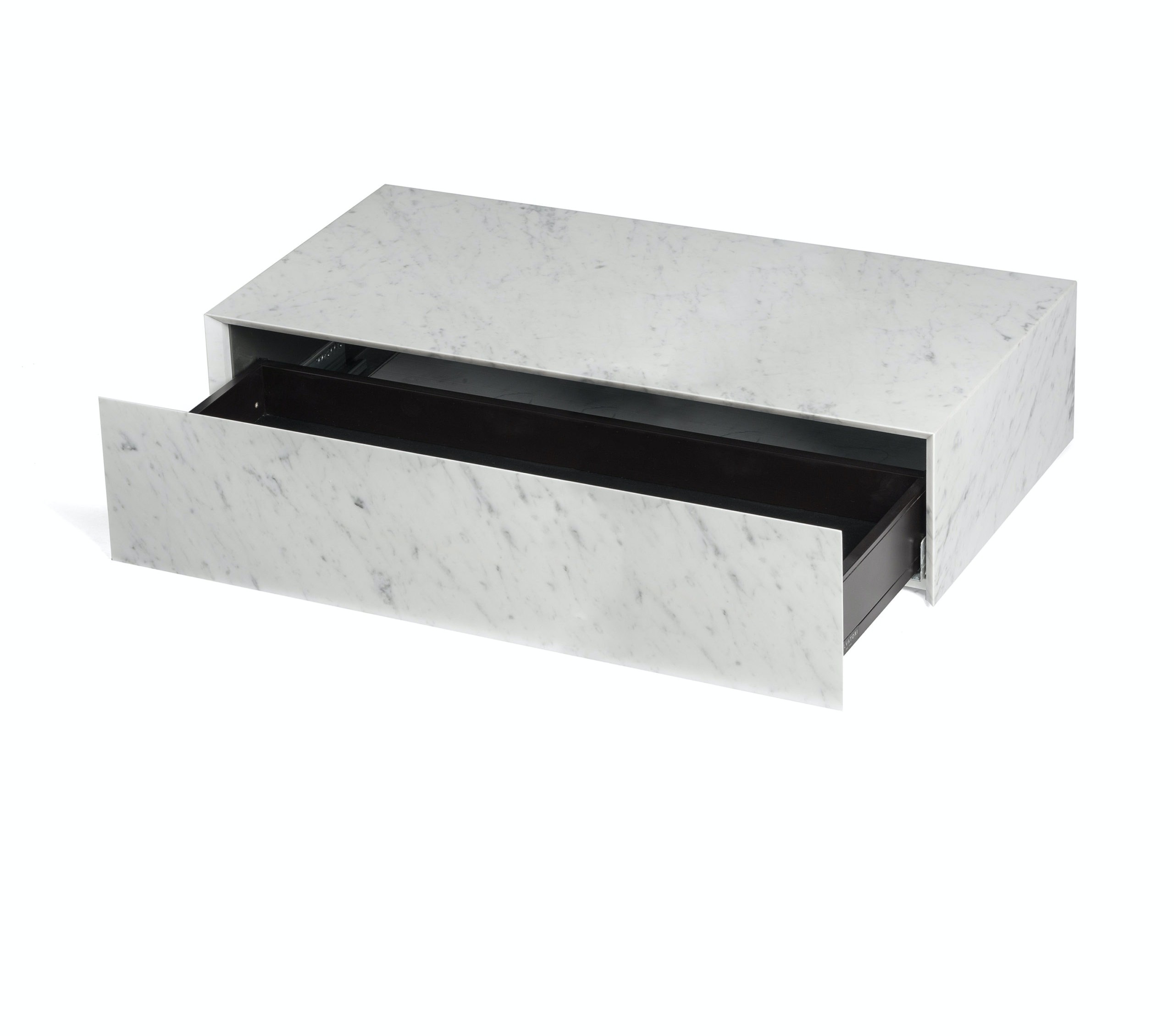 Part of the Fontane Bianche series, the Ciane drawers and floating shelves were created as a homage to a modern-day legend, the groundbreaking conceptual artist Donald Judd.
