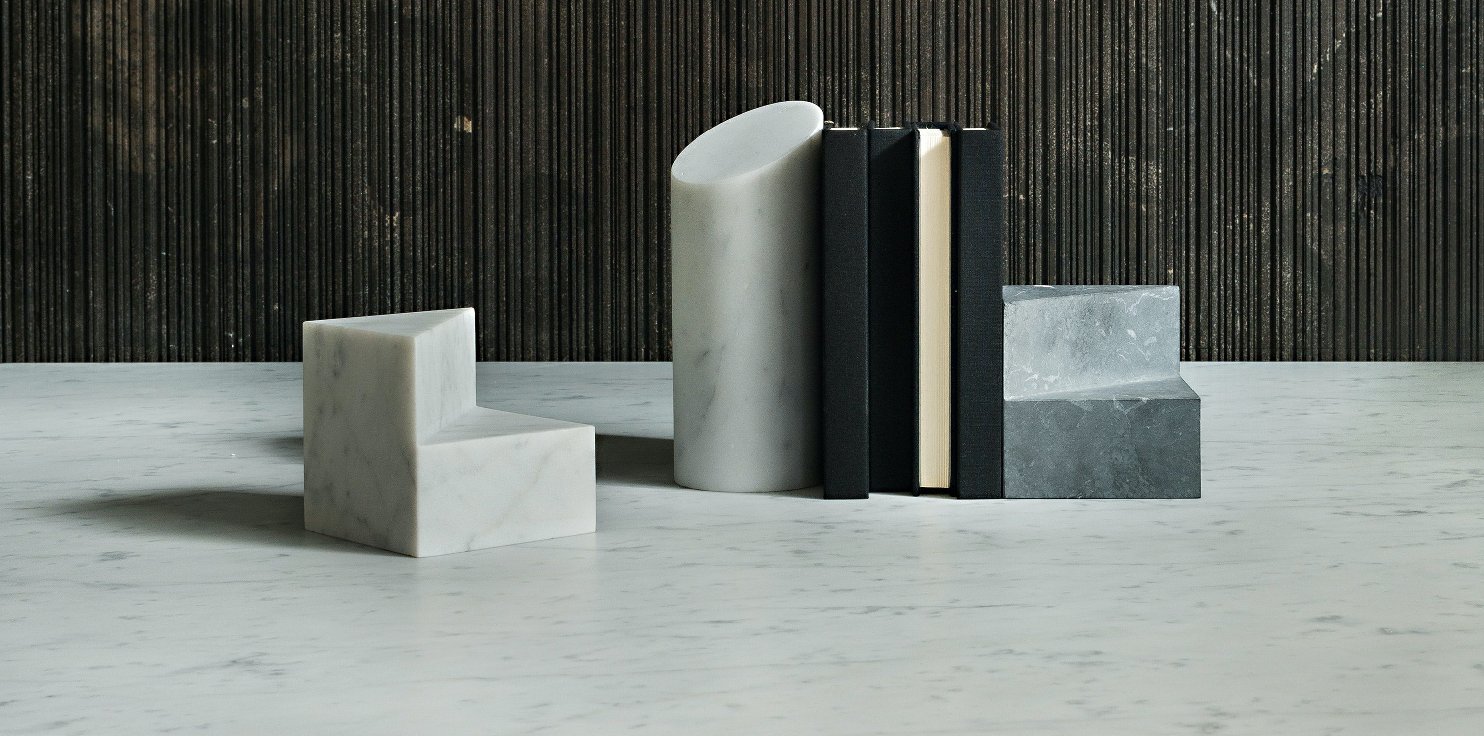 Playing with the simplicity of geometry, Elisa Ossino has envisioned an elegant series of bookends in Salvatori’s natural stone.