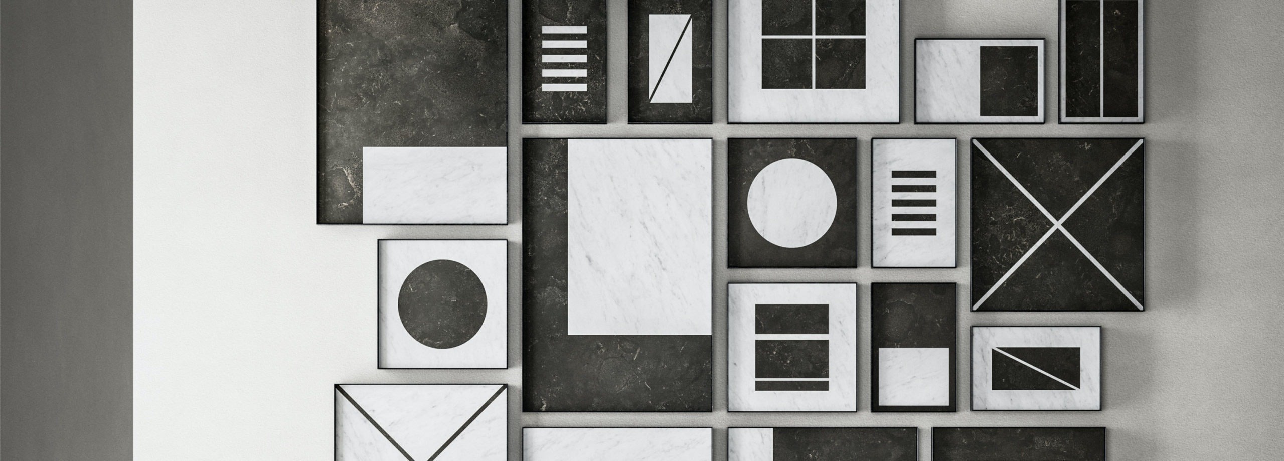 Intarsi is a series of ornamental stone pictures in glorious white Bianco Carrara marble, contrasted with the rich dark tones of Pietra d’Avola limestone. Playing with symmetry and pattern, each piece adds a bold touch of design to any space.