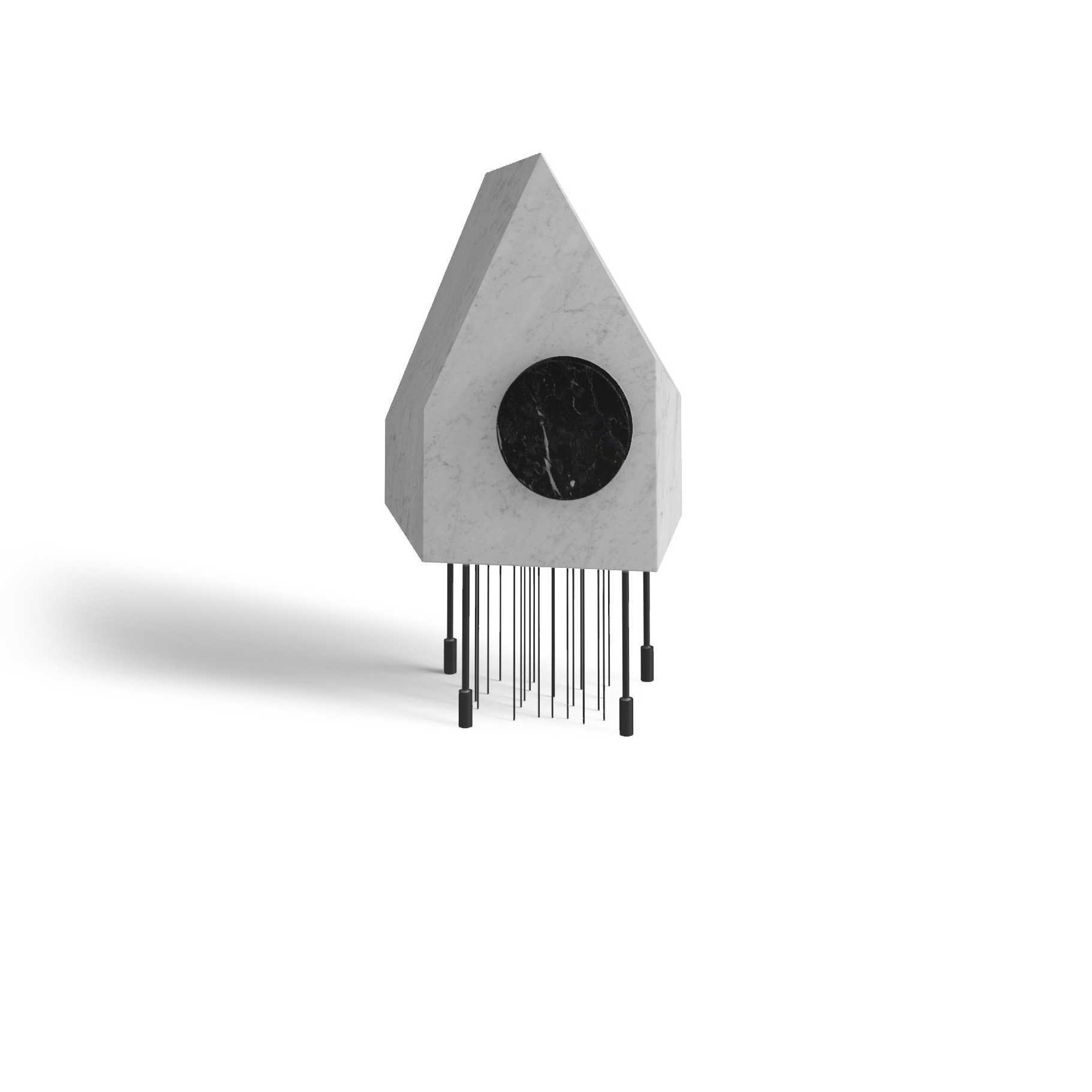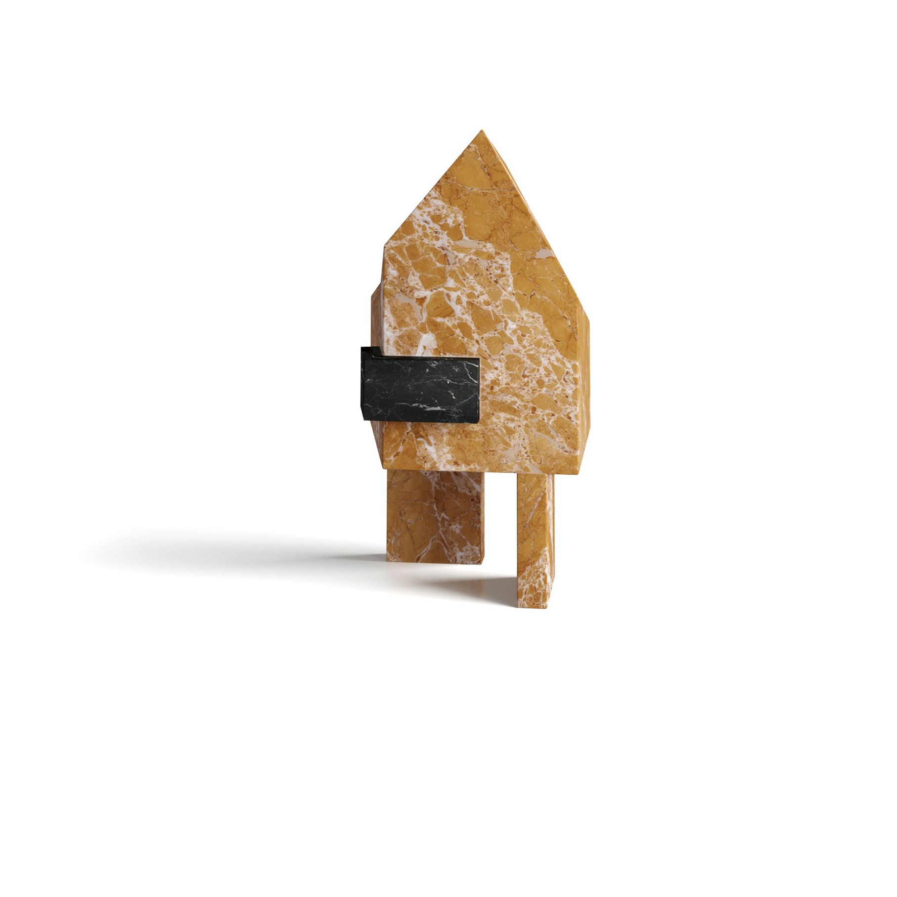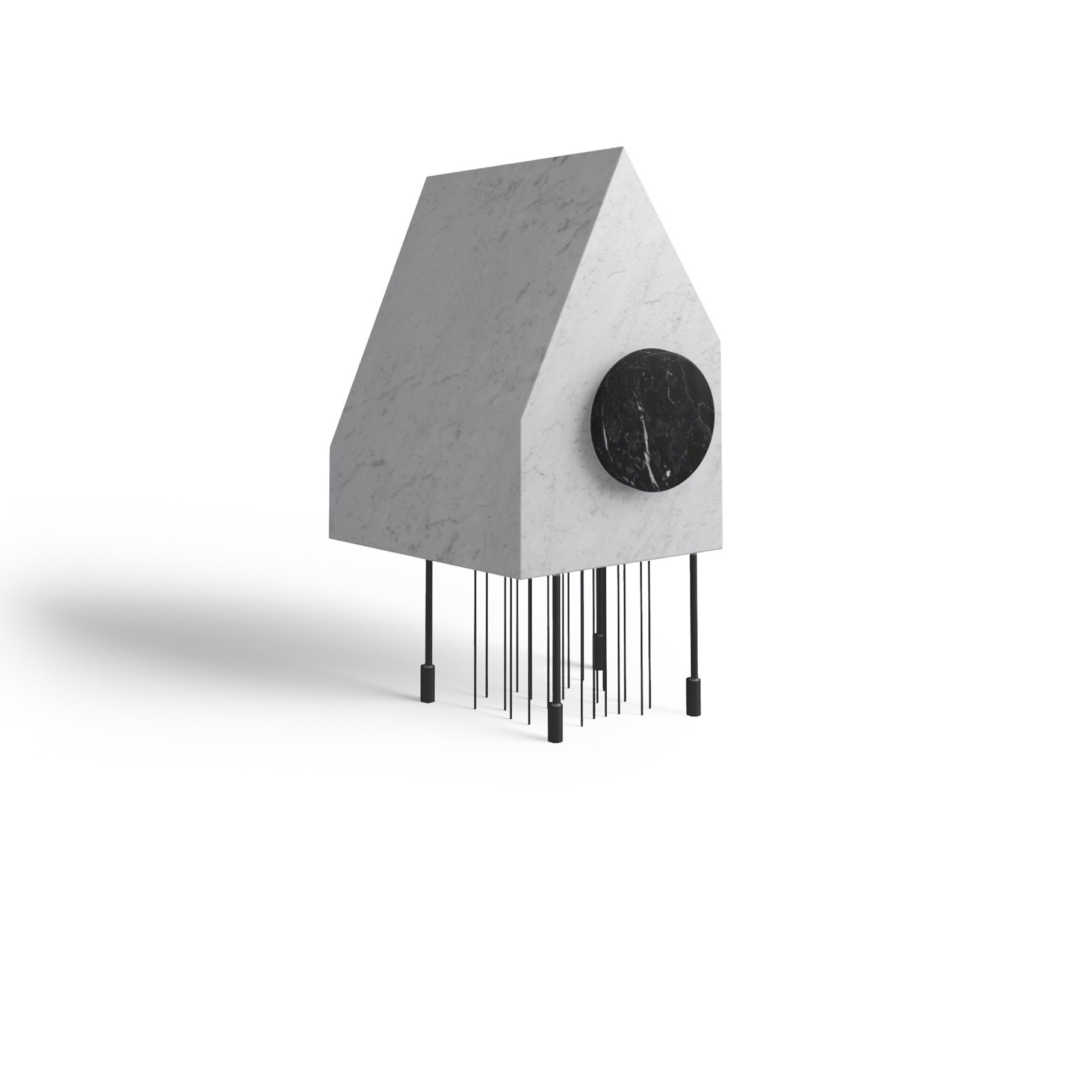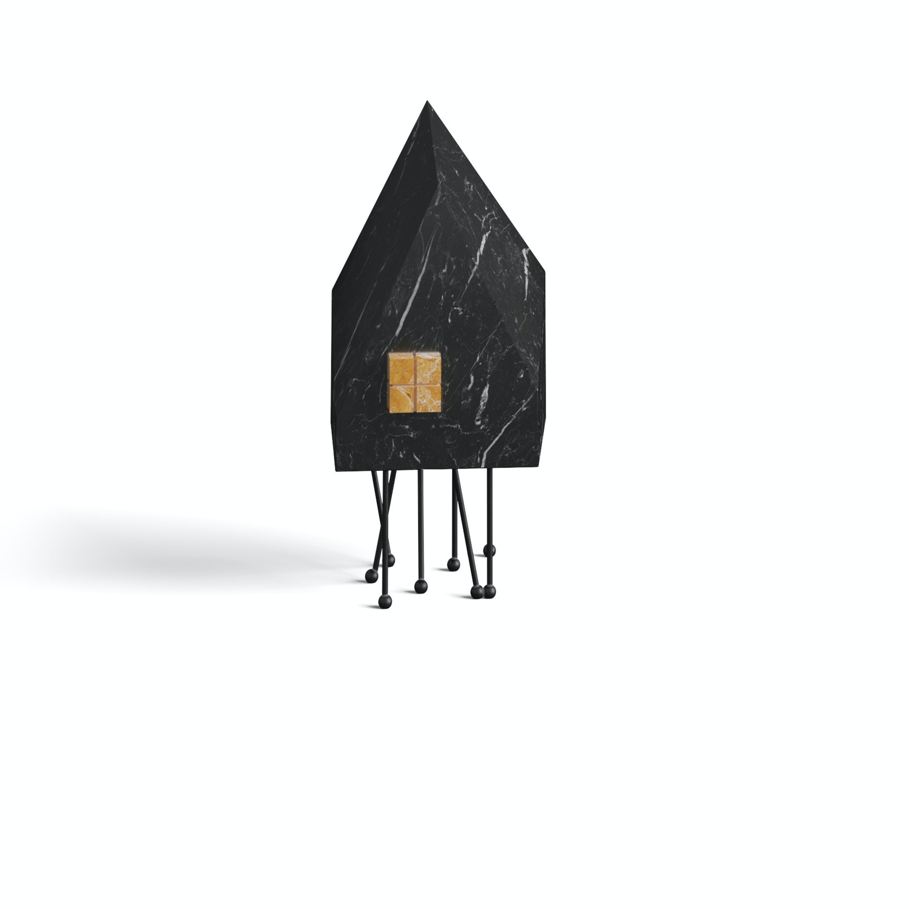 A series of architectural sculptures in natural stone, playing with the notion of the archetypical house, make up a fantasy neighbourhood, with each piece their own tiny contained world to be explored, lived in and experienced.