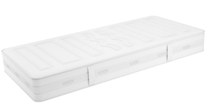 The Swissflex? versa 24 Evo Swiss foam mattress is the perfect choice for anyone who places highest demands on their sleeping comfort. Thanks to the innovative core made of 100% EvoPore foam, you not only secure top-class lying comfort, but also a sustainable mattress that is easier to recycle. The sophisticated combination of different foam layers ensures flexible body adaptation and an almost weightless lying feeling. Thanks to the transverse ventilation channels, you also benefit from a pleasantly dry bed climate.