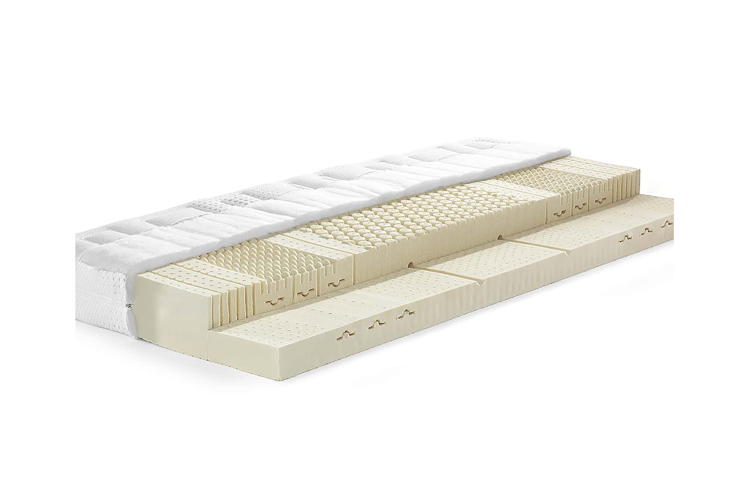 Sleeping on the versa 20 natural latex mattress with a total height of 20 cm, you will enjoy a comfortable lying sensation. The 7-zone technology offers the advantage of individual support for different body parts. The durable material with an intelligent ventilation system provides you with an even sleeping climate for peaceful nights.