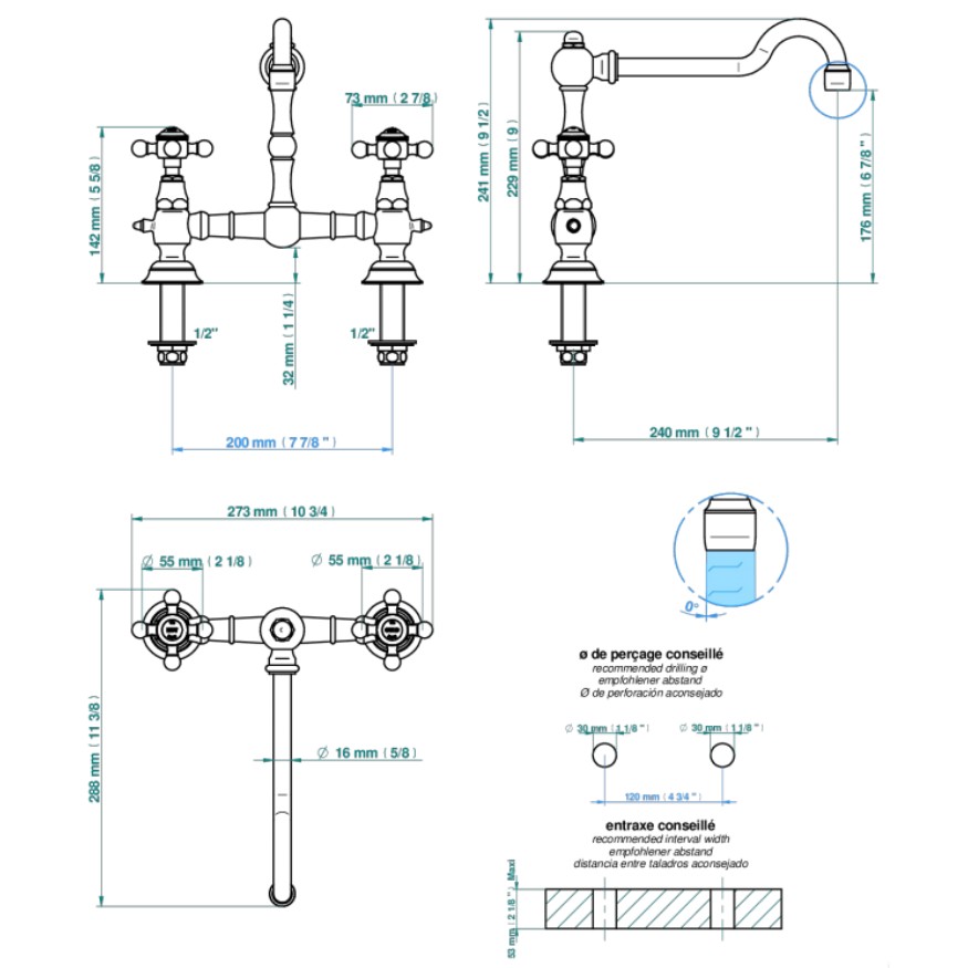 Recommandé : 3 bars (max. 5 bars) - Advised : 43,5 psi (max. 72 psi)