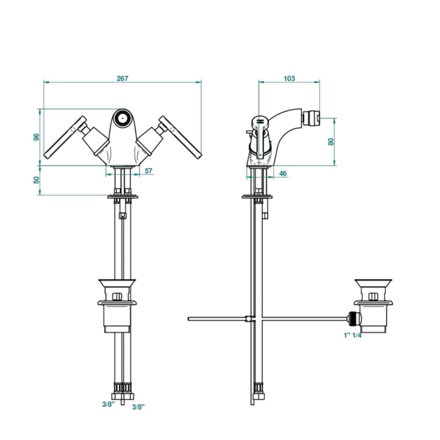 SPIRIT WITH LEVER坐浴盆混合器尺寸圖1