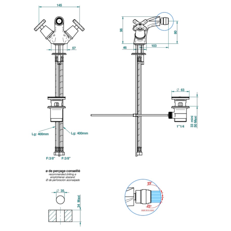 Recommandé : 3 bars (max. 5 bars) - Advised : 43,5 psi (max. 72 psi)