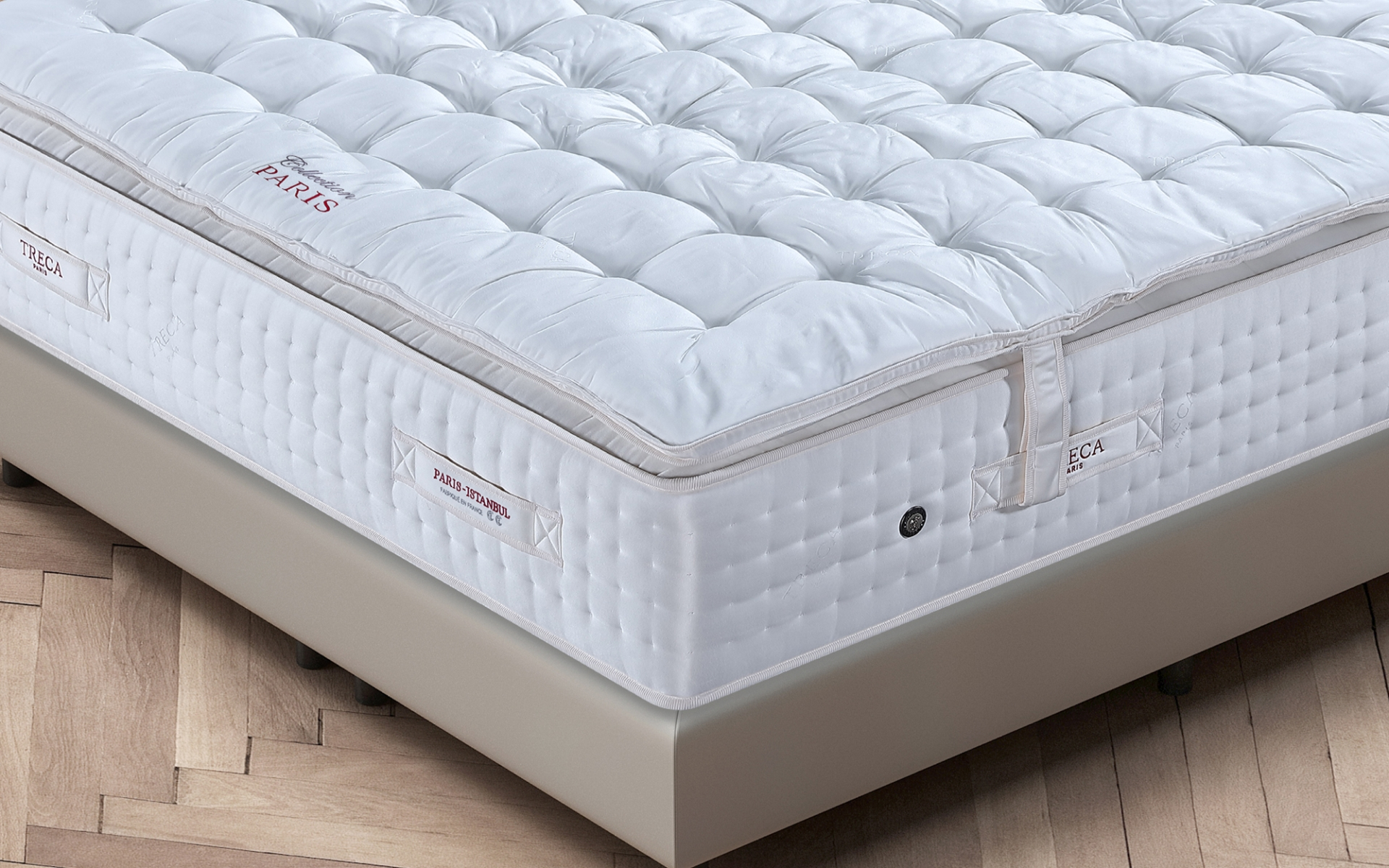 采用Pullman?彈簧兼?zhèn)涫孢m感和動(dòng)態(tài)支撐。Softcare?棉與冬季的羊毛和夏季的白棉相結(jié)合,自然調(diào)溫