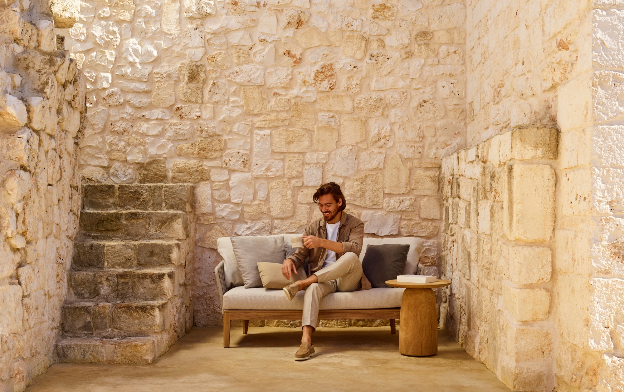 The airy design of the Mood collection and its warm combination of teak and handwoven backs will immediately create an intimate atmosphere on your patio. The rounded design of the durable teak gives the sofa a warm and friendly tone. The weave in Tricord has a very soft touch, but can nevertheless defy all weather conditions. Tribù has developed a range of natural colours that fit in with any type of outdoor environment. The comfortable outdoor cushions can be left out in the rain, thanks to the ventilating, water-repellent filling. The back cushions are available in various styles to match every taste.